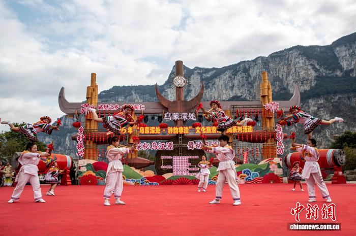 图为上演者为不雅寡演出苗族芦笙舞“滚山珠”。史痛快 摄