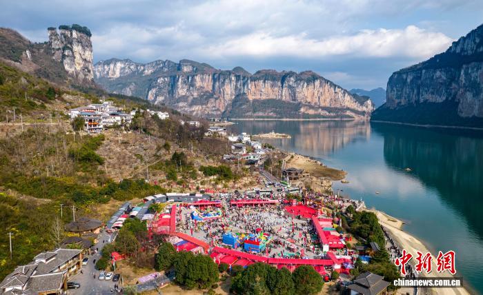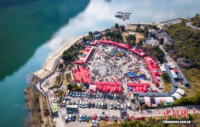 图为村平易近战旅客正在旁观节目上演。(无人机像片)史欢快 摄