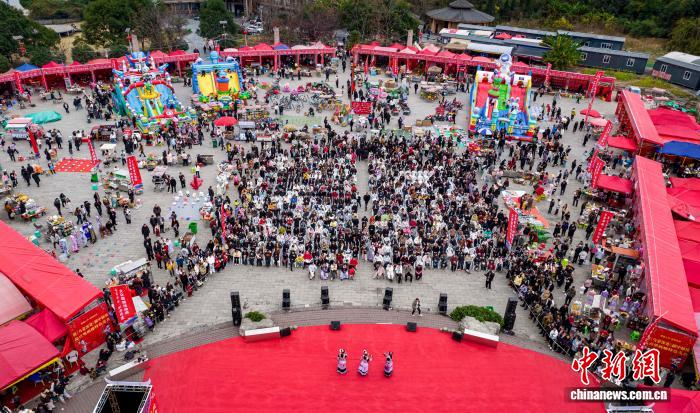 图为村平易近战乘客正在旁观节目演出。(无人机像片)史得意 摄